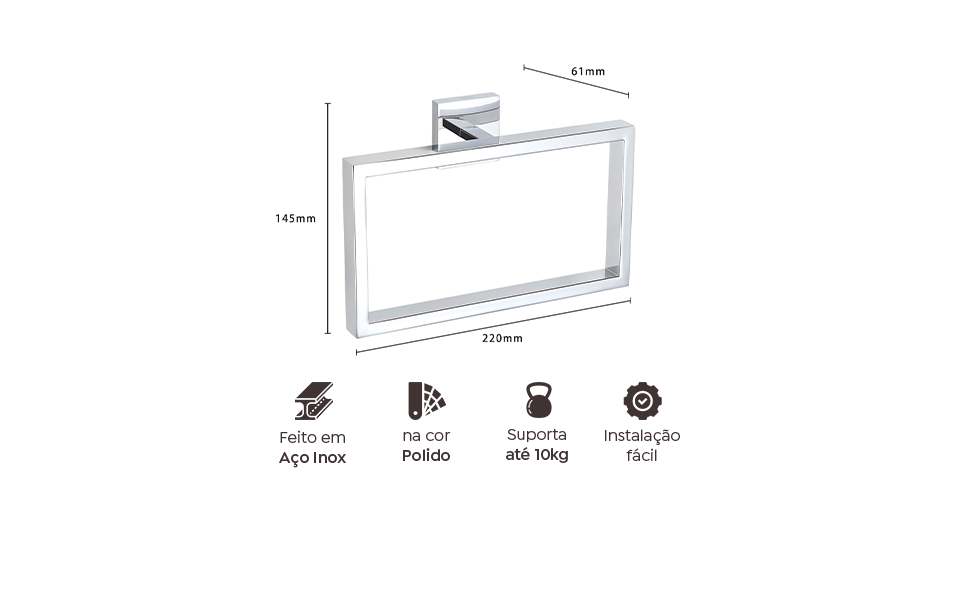 O Porta Toalha de Rosto Mão Quadrado Aço Inox Cromado é a escolha perfeita para quem busca aliar praticidade, sofisticação e inovação no banheiro. Seu design moderno e elegante, transforma o ambiente, proporcionando um toque de estilo e organização. Além disso, seu visual versátil adapta-se perfeitamente a banheiros contemporâneos, clássicos ou minimalistas, harmonizando de forma elegante com diversos tipos de decoração e acessórios